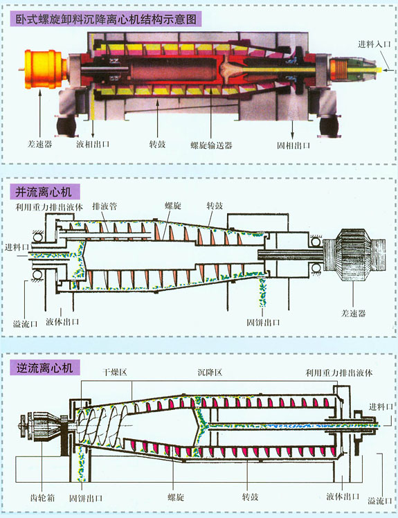 臥式螺旋離心機是用離心機沉降原理分離懸浮液的機器。對固相顆粒在0.005-3mm,重量濃度比≤10%或體積濃度比≤70%、固液比重差≥0.05g/cm3的各種懸浮液均適用該類離心機進行固液分離和顆粒分級,有并流,逆流和分級各類型。